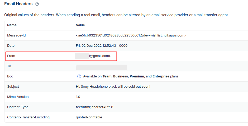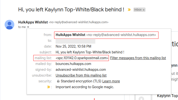 By default, the Advanced Wishlist app uses a private mailing service and sends notifications to your customers on behalf you your store from no-reply@advanced-wishlist.hulkapps.com mail address.