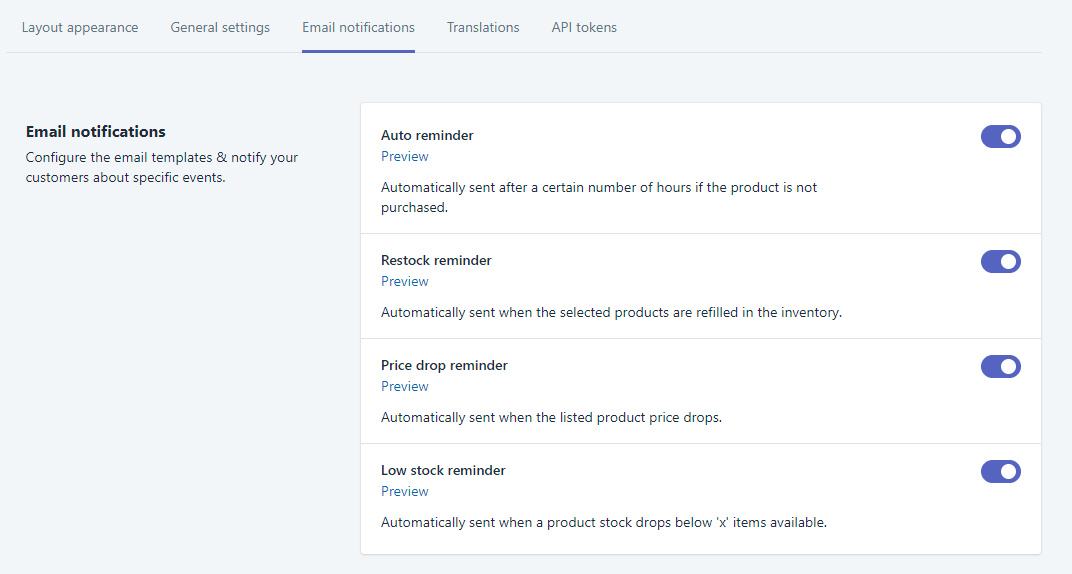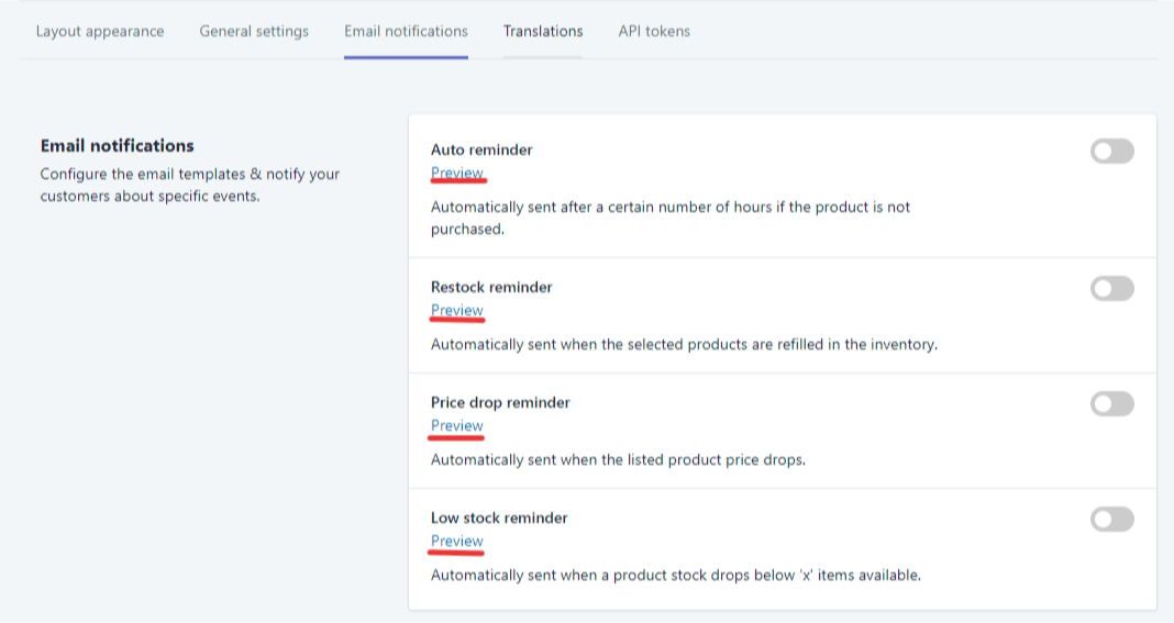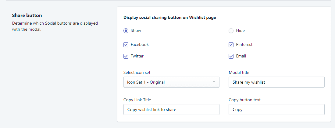 Of course. We have implemented this feature so your customer can share their wishlist with friends and family. To enable this feature and provide your customers with the ability to share their wishlist, head to the application Settings tab > Layout appearance > Scroll down > Share button section > Click on Show/hide button