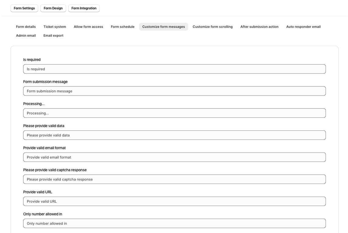 These are the error options that are displayed to the customers when they receive an error message if any mistake is made while submitting the form.