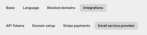 1. Go to "Settings", then "Integrations" and "Email Service Provider"