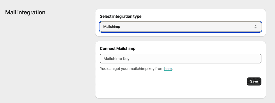 2. Here you can connect either your “Mailchimp” or “Klaviyo” account