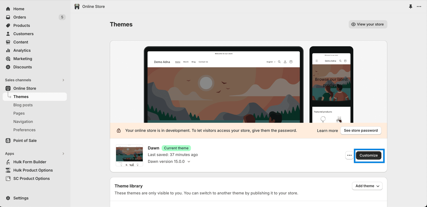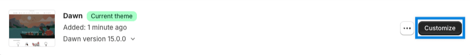 11. Navigate back to the Online Store section of your Shopify store and under the Themes page look for your preferred Shopify 2.0 theme that is compatible and click on the Customize button.