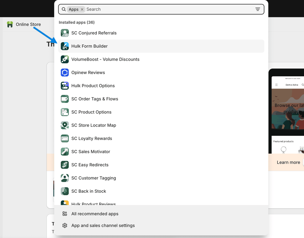 3. Navigate to the Apps page of your Shopify store and open the Form Builder application.