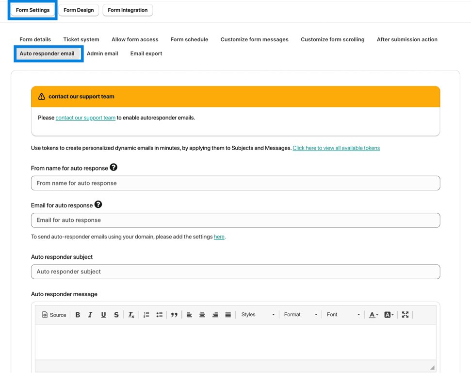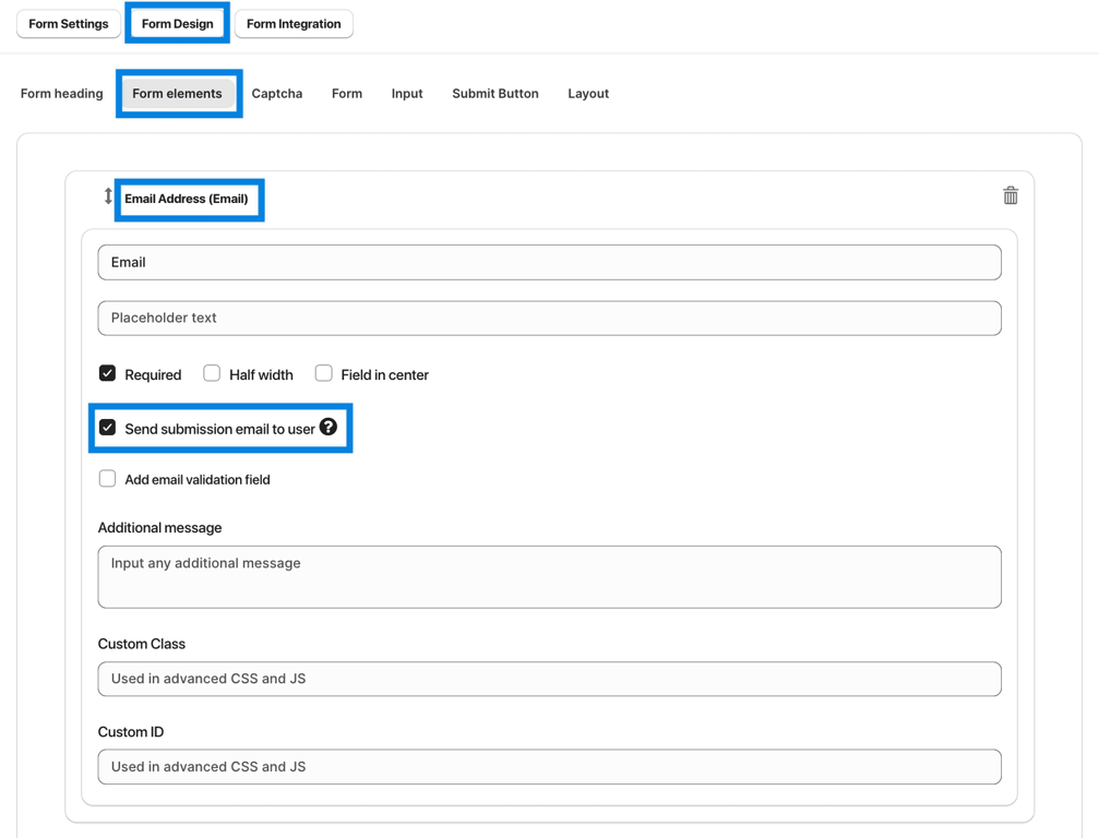 Note: In case you wish to disable the auto-responder email sent to your users, please uncheck the checkbox next to "Send submission email to the user" as shown below: