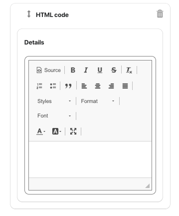 Use this element to embed videos, custom styling, or any interactive content supported by HTML.