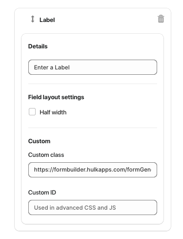 Custom ID – unique identifier for targeting the label with CSS or JS.