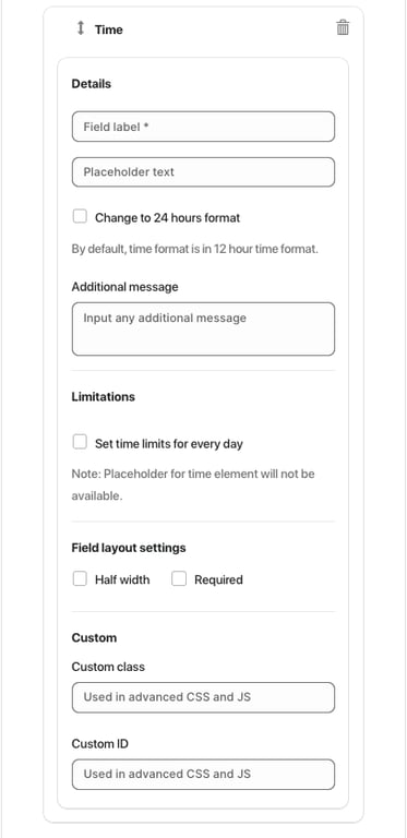 Custom ID – unique identifier for targeting the field with CSS or JS.