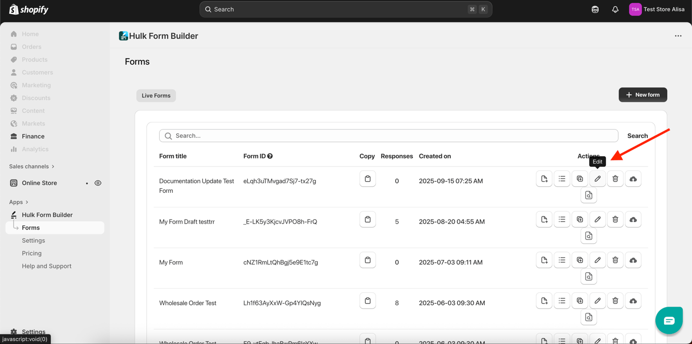 Click on the Edit button to edit your form