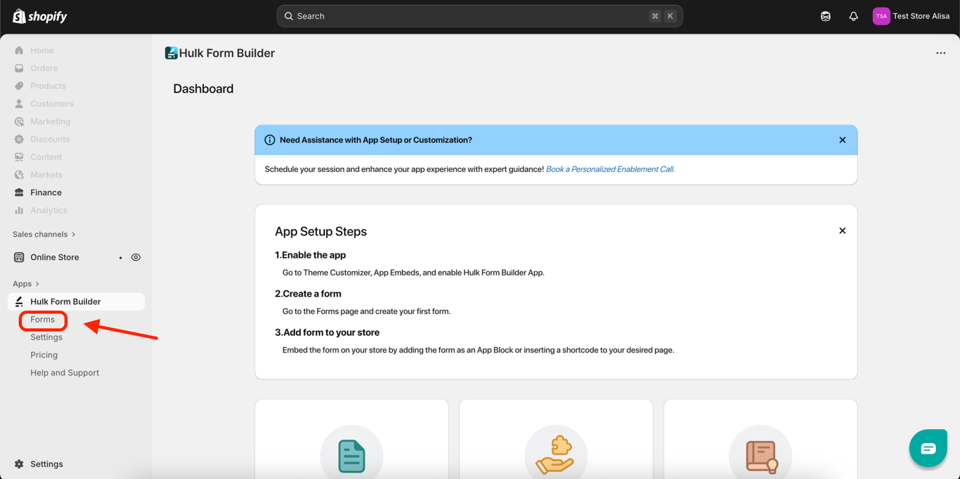 Click on Forms in the left-hand menu