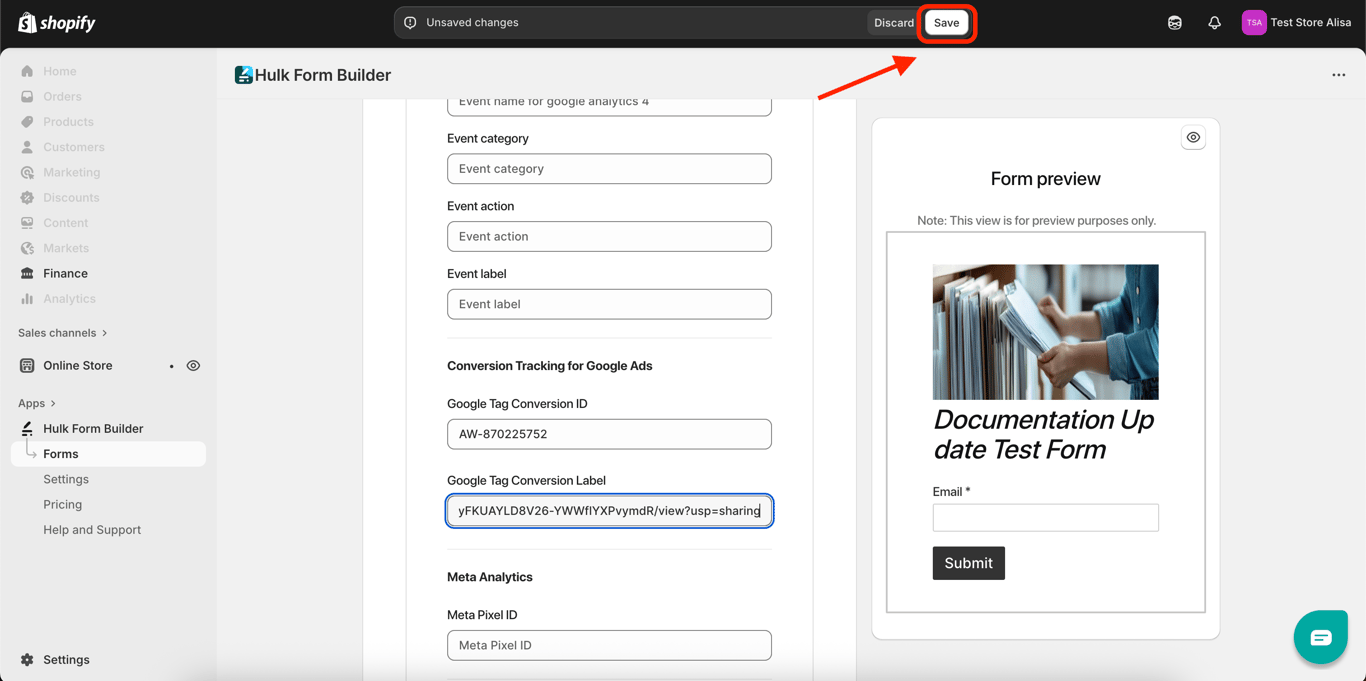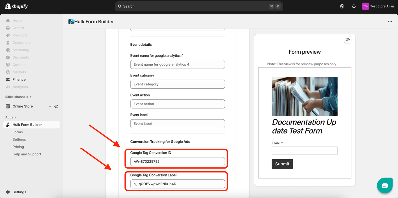 These are crucial elements for linking your conversion action to the specific form inside the Form Builder App.