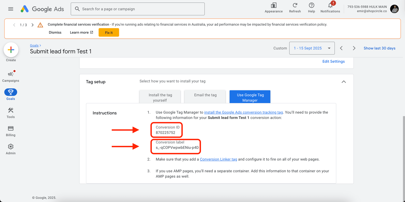Here you will find your Conversion ID and Conversion Label