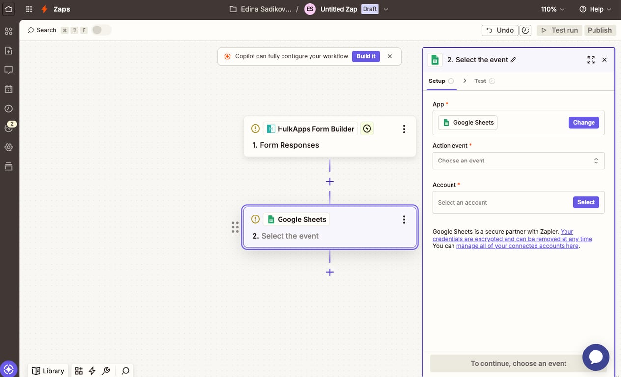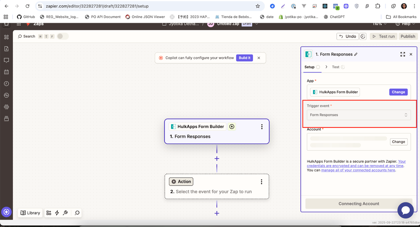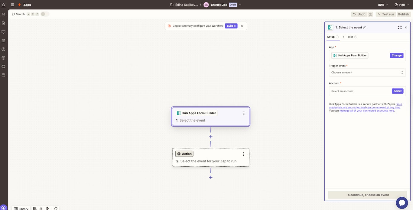 In the Trigger section, search for and choose HulkApps Form Builder.
