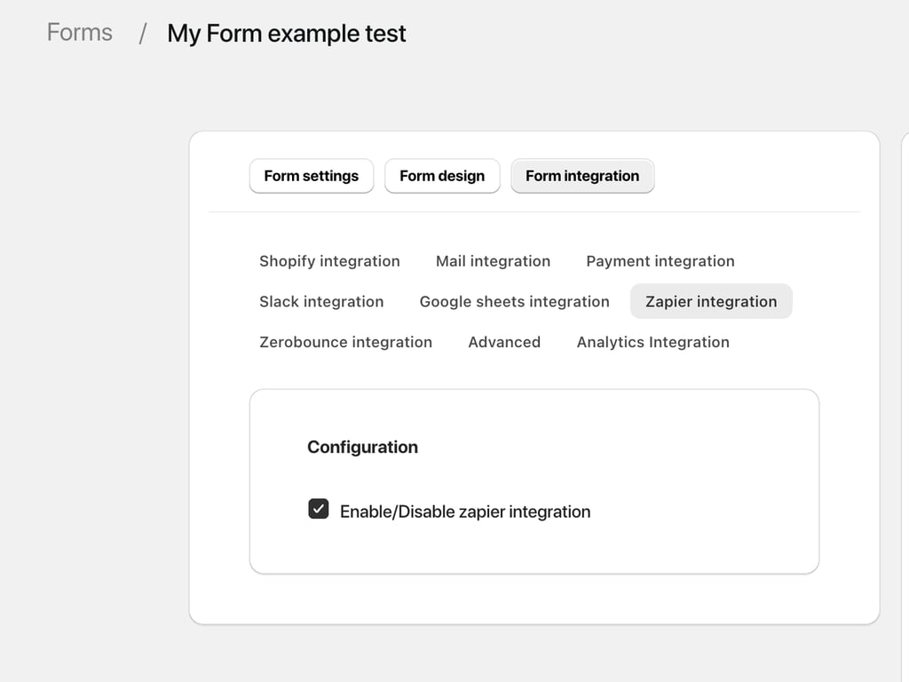 Enable the “Enable/Disable Zapier Integration” checkbox.