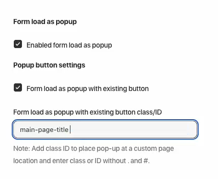 Enter the Form load as a pop-up with the existing button class/ID box. To find it, go to the page on your store where you want the form to appear. Click on the specific text or section where you’d like the form displayed, then right-click and select Inspect. In the code inspector, locate and copy the Class or ID of that element, and paste it into the box.