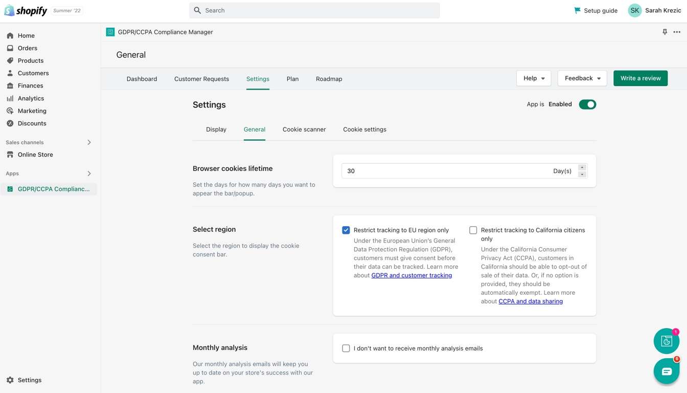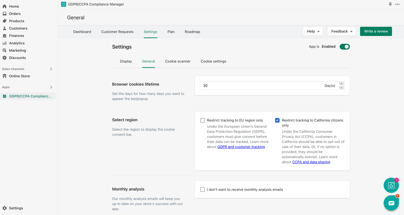 If you want to show the cookie consent consent bar to only CA users, check the box & non-CA users will not be able to see any cookie consent bar on your site: