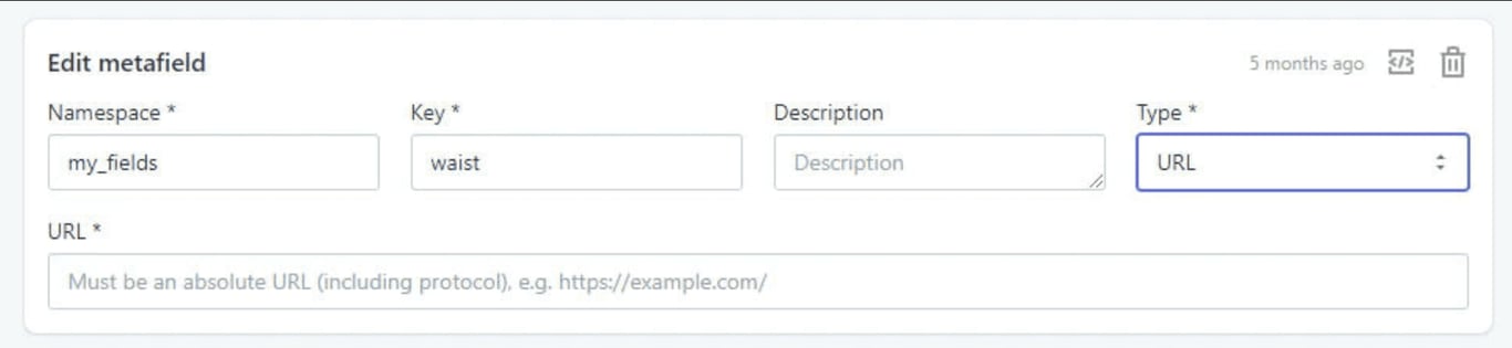 - Type: Select the type of metafield as Url