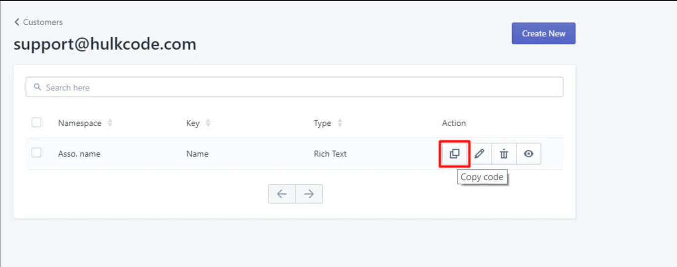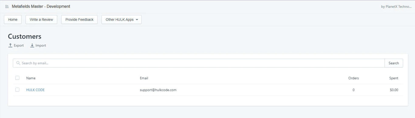 In this tutorial customer’s associate name is displayed on the collections page of the Shopify store. To start, navigate to the Master Metafield application, and in Customer look for the customer to add metafield for. In this example, a customer is chosen to display its associate on it.
