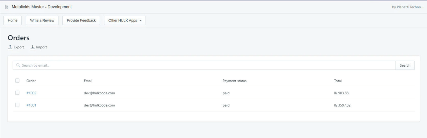 In this tutorial, Order Type is displayed on the specific orders of customer in the store. To start, navigate to the Metafields Master application, and in order look for the specific order to add metafield. In this example, an Order Type is displayed on the order.