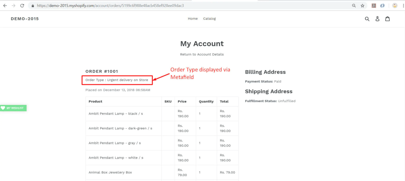 Now click on the order and create the metafield by adding up the details.