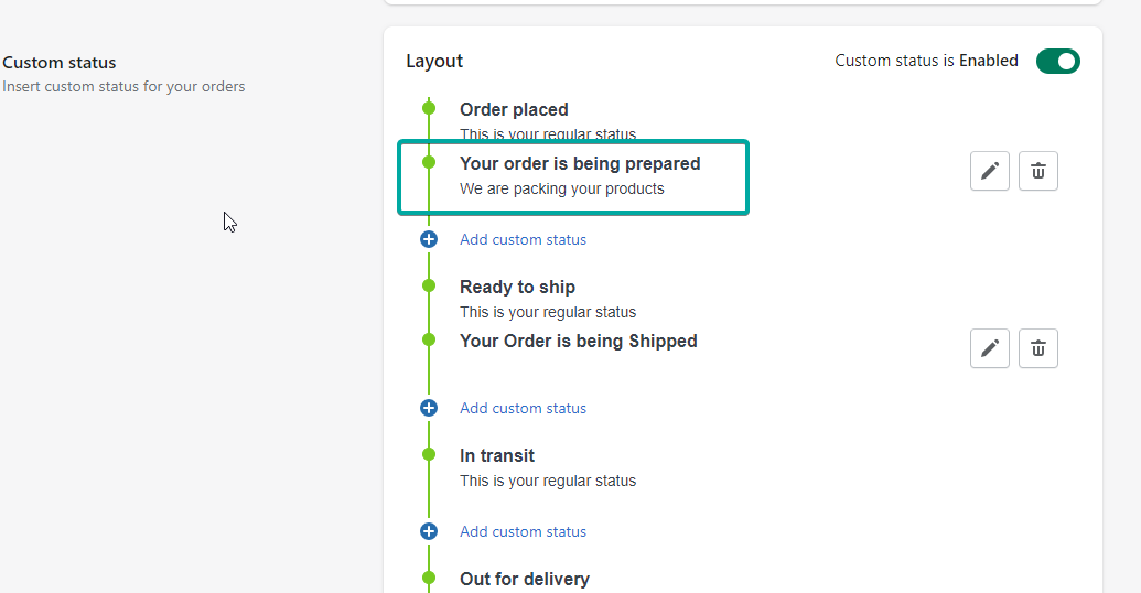 In situations where your Shopify store uses local delivery services, or you want to display any additional steps/information to your order’s status, we got your back!