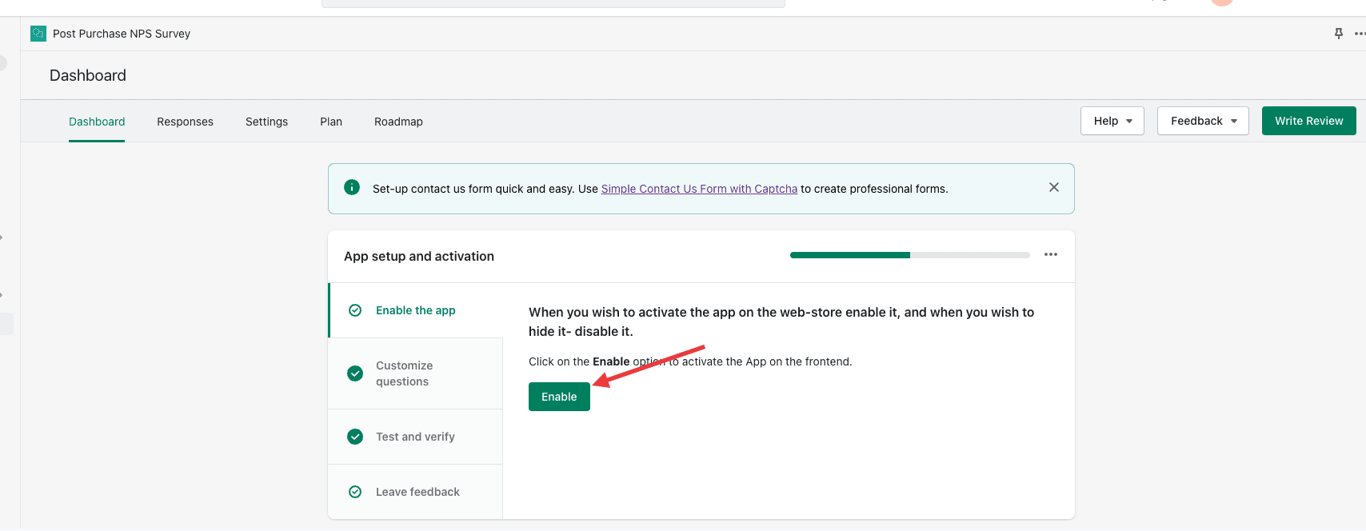 Clicking the “Enable” button will turn the app on, so you can go on and customize your questions.