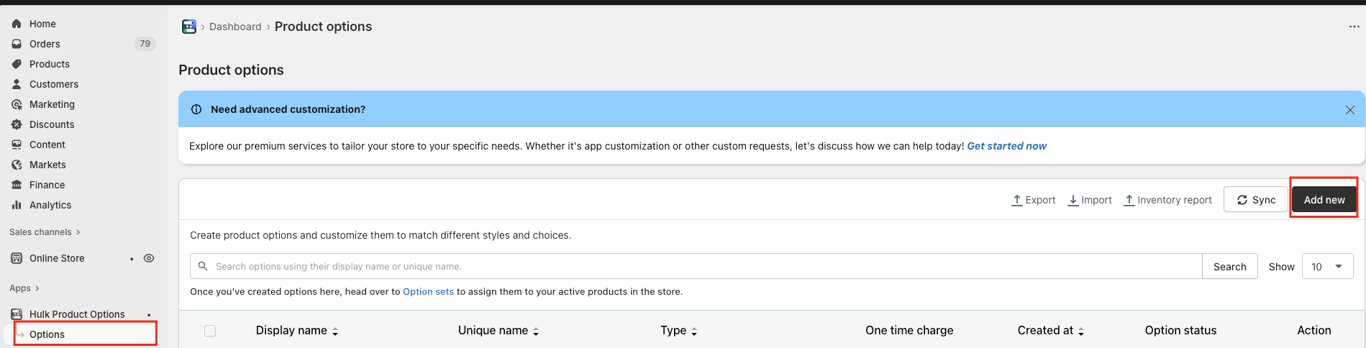 The Hulk Product Options app allows you to create custom product options (like dropdowns, swatches, checkboxes, text boxes, etc.) and assign them to one or multiple products easily using Option Sets.