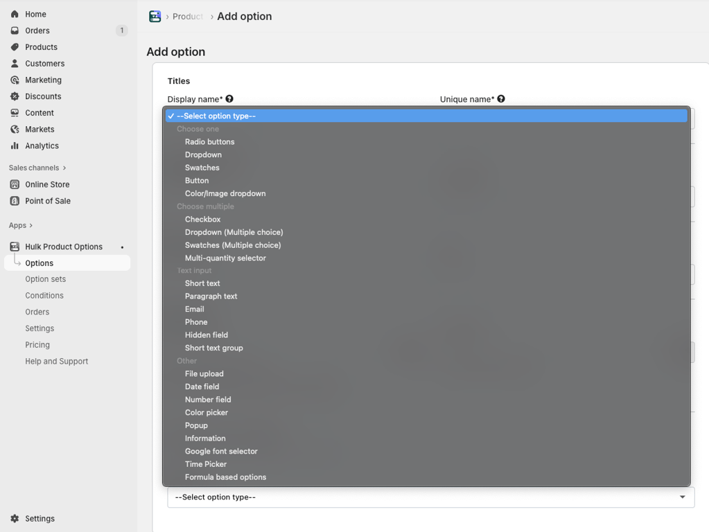 Create and customize product options, define option sets and set conditions. Our app supports four categories of options: