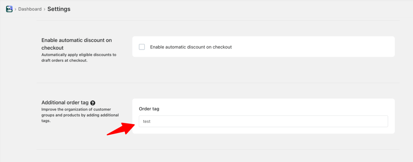 The order will automatically have a hulkapps-po tag, but you can also define an additional tag here: