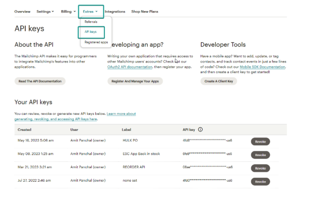 (1) Log in to your Mailchimp account and create an API Token in your Mailchimp Account.