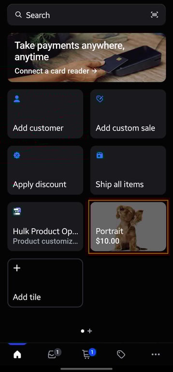Add the product(s) to the cart by selecting them after they’ve been added to the tile.