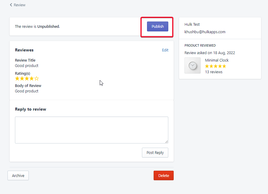 For manual approval of the reviews, navigate to the Reviews section; in this section, you can see the pending reviews; open them, and publish them at your convenience.