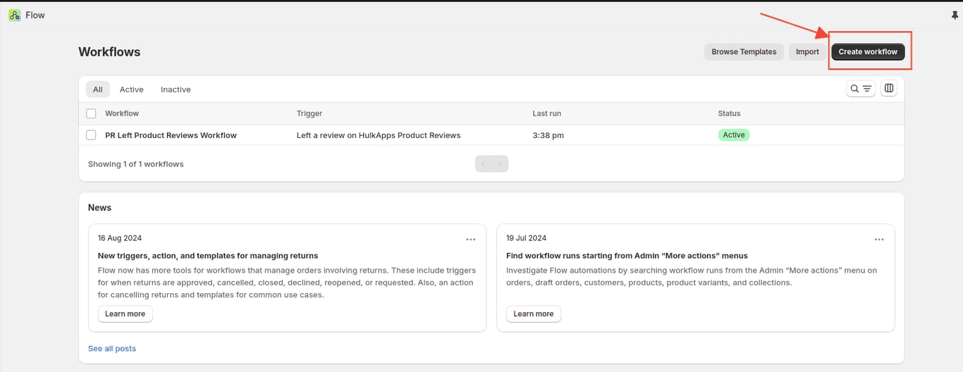 After installing HulkApps Product Reviews app, ensure you have Shopify Flow installed on your store as well. If not, you can install it from the Shopify App Store.