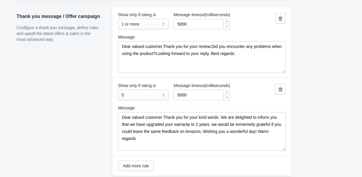 Once you define the rules for review rating, we will trigger an email campaign along with a success notification.