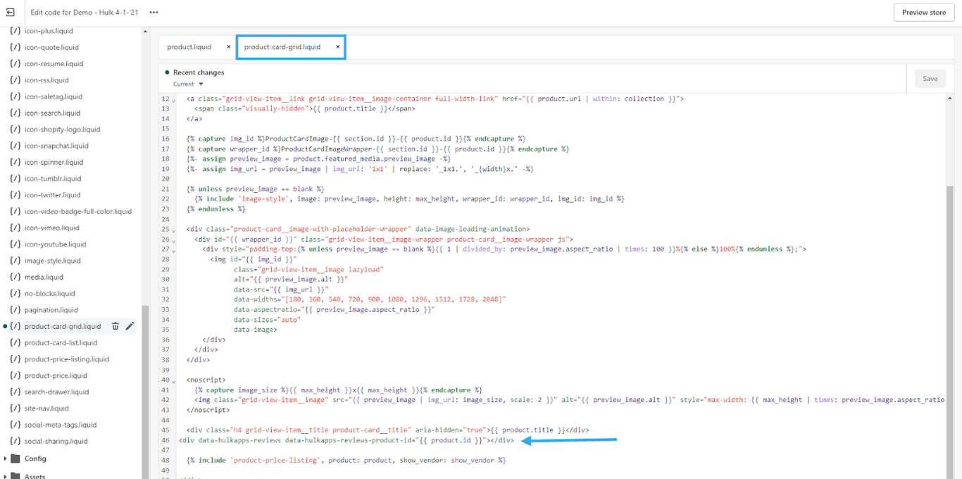 <div data-hulkapps-reviews data-hulkapps-reviews-product-id="{{ product.id }}"></div>