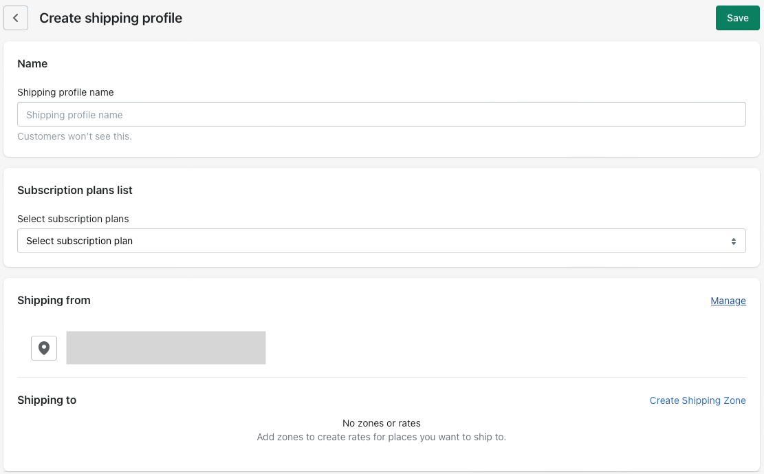 - Add a name for your Shipping profile and select the Subscription products plan.