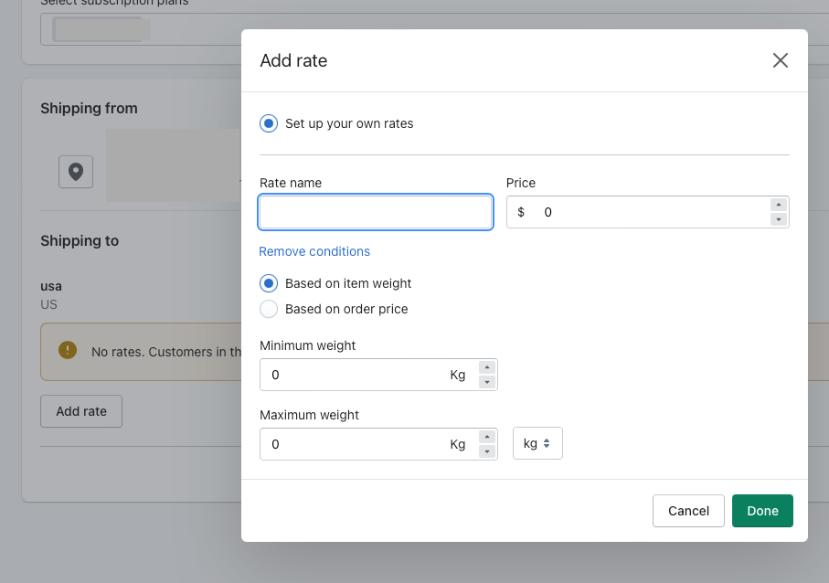- Additionally, you can set specific conditions (i.e., based on Min to Max weight or order price)