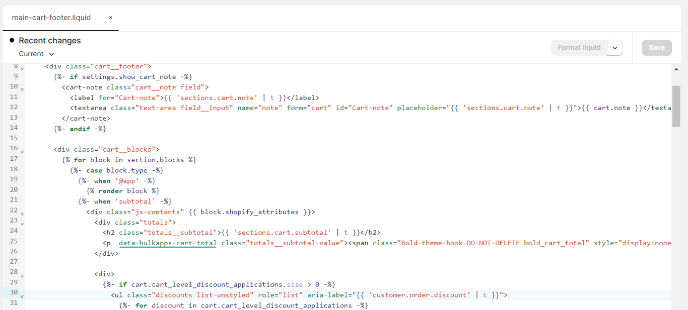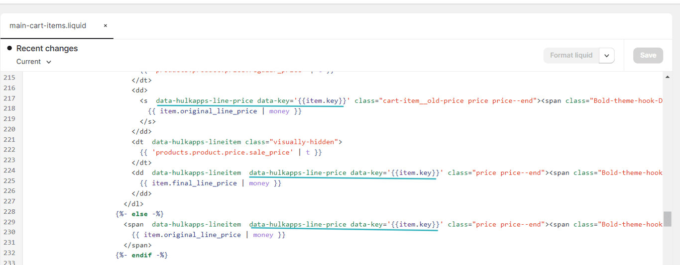 Individually replace existing pricing snippets with HulkApps' unique snippets cart template. Skip this step if all the required snippets are present in your required theme.