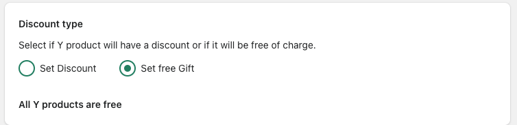 Decide whether the "Y" products will be offered at a discount or as a free gift. You can choose to apply a percentage or fixed price discount.