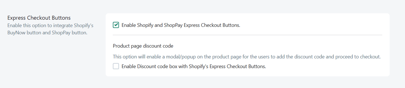 There is a direct setting in our app to integrate Shopify’s Buy Now button and ShopPay button.